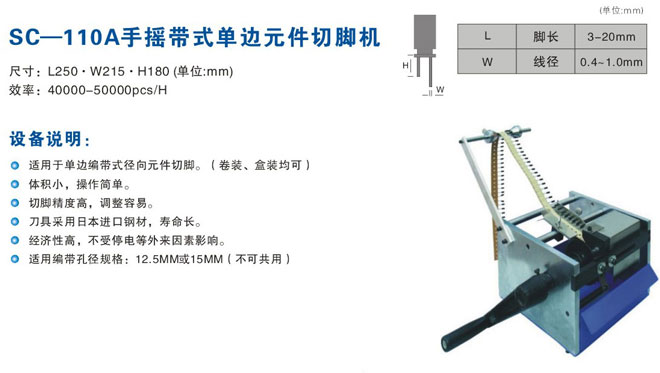 产品名称:SC-110A手摇带式单边元件切脚机
