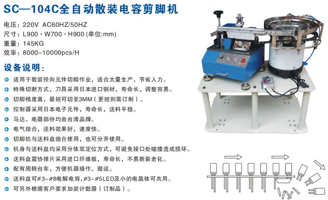 产品名称:SC-104C全自动散装散装电容剪脚机